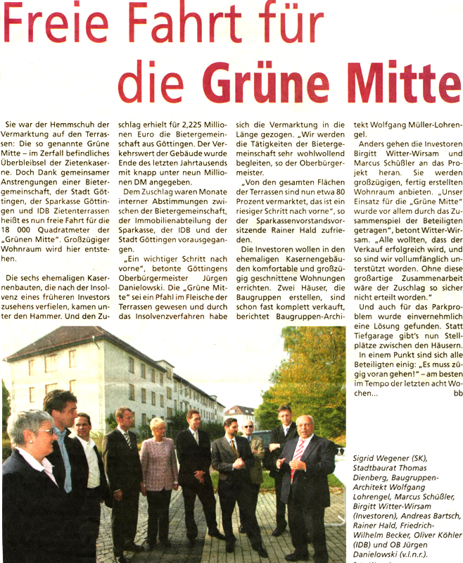 Göttinger Tageblatt 5.10.2005 Umbau ehemalige Kasernen-Gebäude
