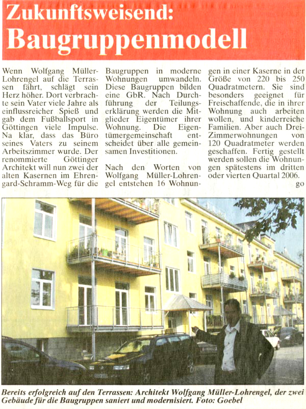 Extra Tipp 5.10.2005 Umbau ehemalige Kasernen-Gebäude Ehrengard-Schramm-Weg 2-12, 37085 Göttingen